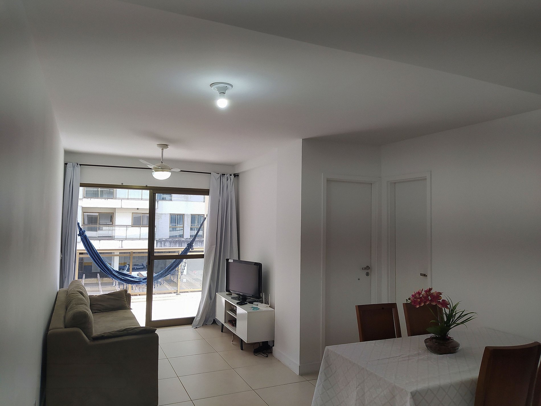 Desfrute de uma estadia relaxante e confortável neste espaçoso apartamento de 1 quarto, ideal para até 4 pessoas. O quarto, equipado com uma cama de casal e ventilador de teto, garante noites frescas e tranquilas. A sala oferece um sofá-cama para 2 pessoas, uma TV de 32" e um segundo ventilador de teto, proporcionando conforto e entretenimento. A cozinha é totalmente equipada com geladeira, filtro de água Europa, fogão de 4 bocas, microondas, talheres, panelas e diversos utensílios como liquidificador e sanduicheira, perfeita para preparar suas refeições. A varanda com vista para o mar e uma rede acolhedora é o local ideal para relaxar e apreciar a brisa do mar.