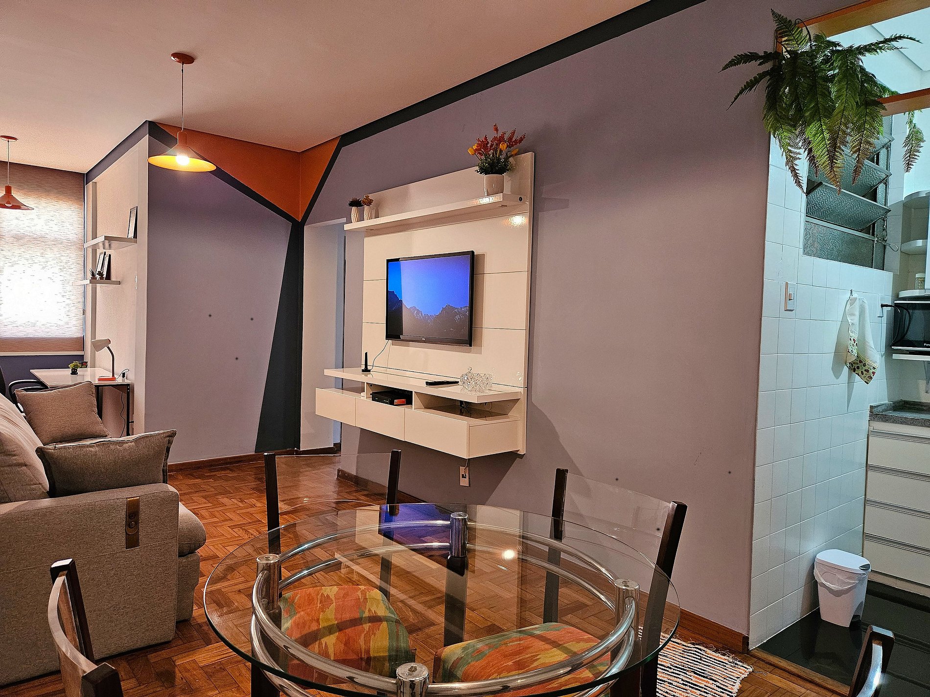 O apartamento oferece ventilador, roupa de cama, toalhas e cobertas para garantir seu conforto. Para momentos de lazer, uma TV de 42 polegadas com ChromeCast e internet WiFi de alta velocidade estão à disposição. O edifício conta com portaria 24 horas, câmeras de monitoramento e elevador, além de uma fechadura inteligente para facilitar sua entrada. Localizado no centro da cidade, é o ponto de partida ideal para explorar as belezas e a cultura de Belo Horizonte, com fácil acesso a tudo o que você precisa.