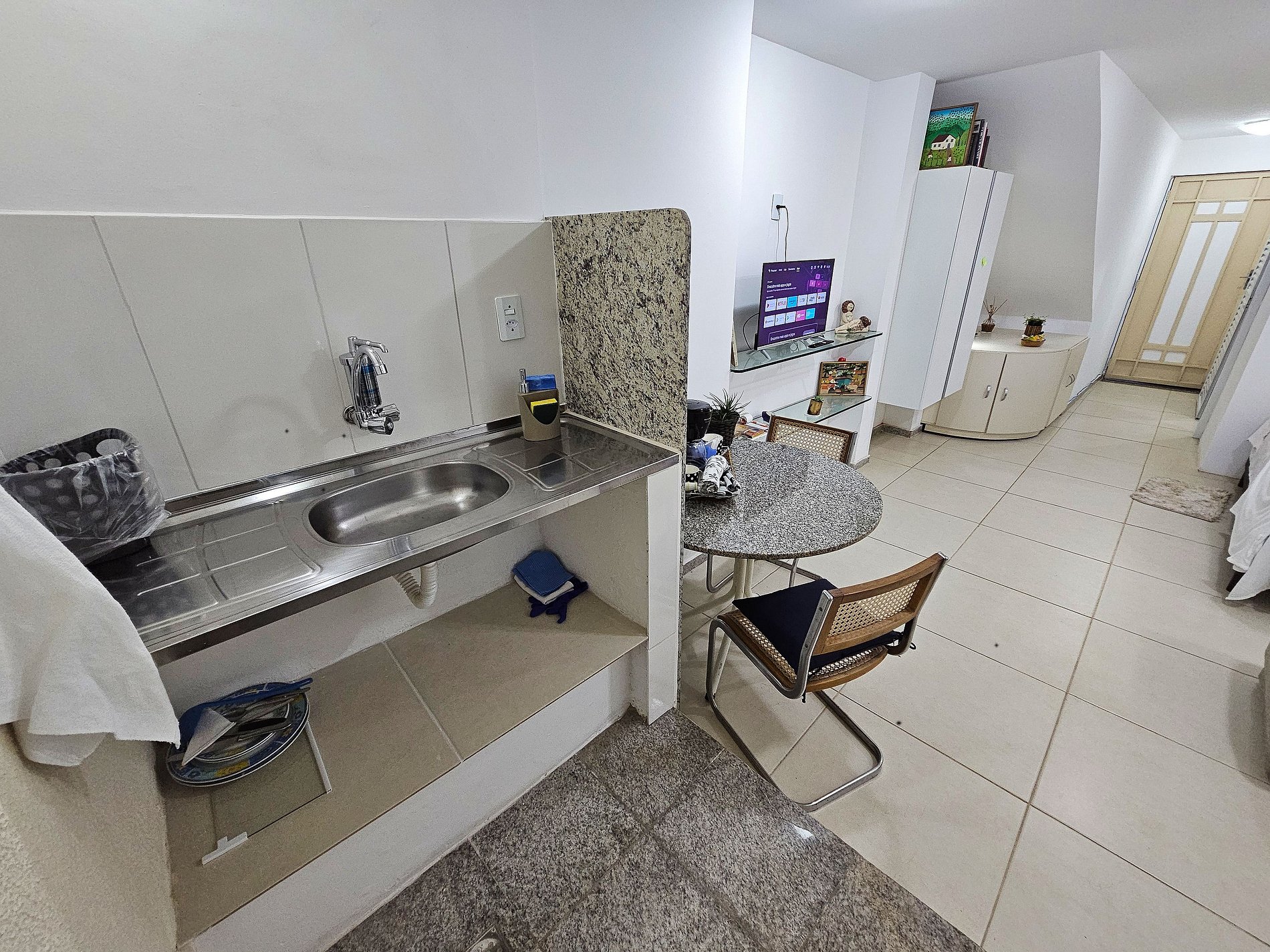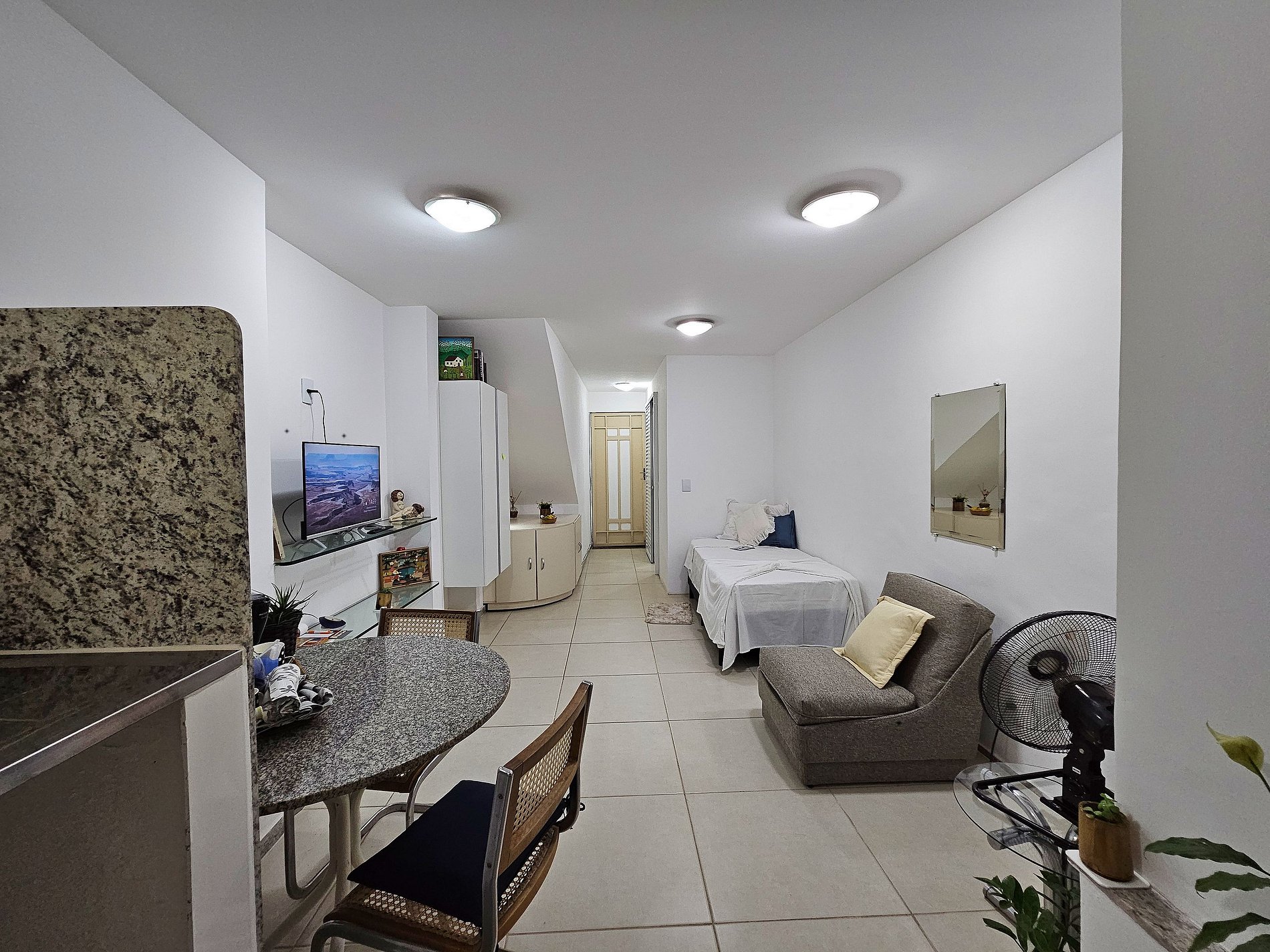 • Ambiente Acolhedor: O estúdio dispõe de uma cama de solteiro confortável, poltrona, mesa com cadeiras e Smart TV, ideal para relaxar após um dia explorando a cidade.