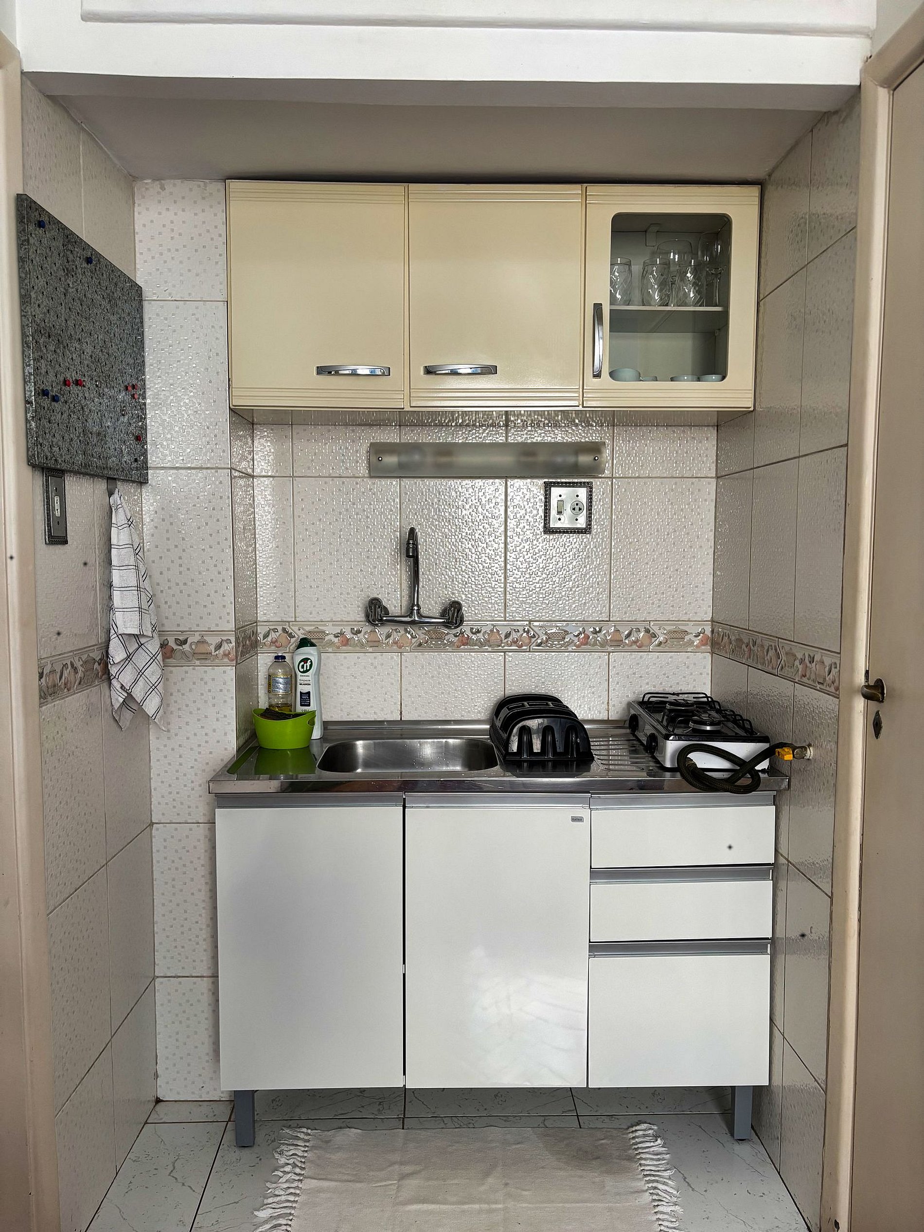 O apartamento oferece tranquilidade e é bem dividido entre quarto, sala, cozinha integrada e banheiro. O quarto conta com uma cama de casal confortável, ar-condicionado e Smart TV. A sala é equipada com um sofá e uma mesa de apoio, ideal para quem precisa trabalhar remotamente. A cozinha permite preparar pequenas refeições, e o banheiro oferece água quente e fria. Para completar, o imóvel possui varanda e sacada, proporcionando uma brisa agradável e um espaço relaxante.