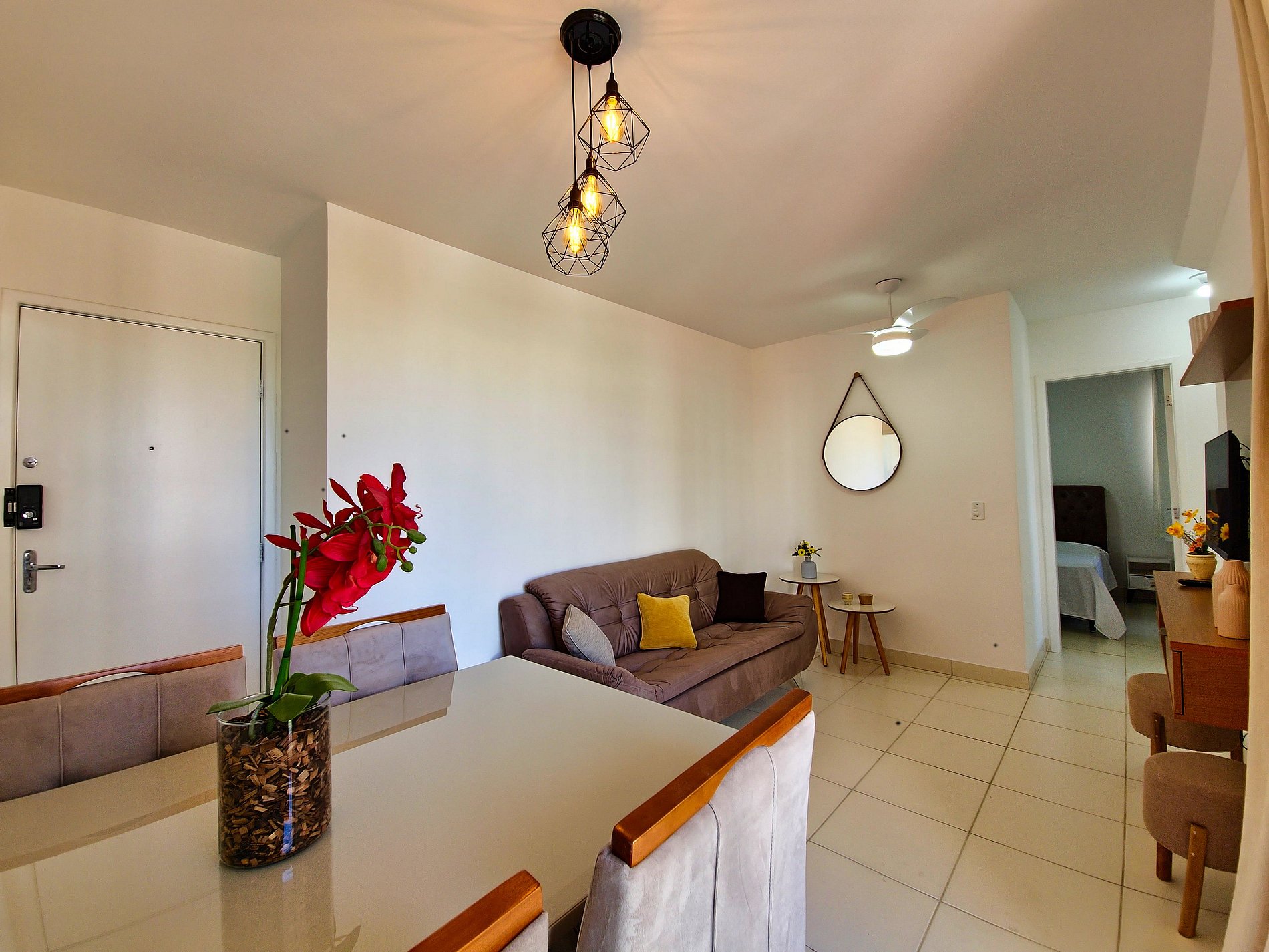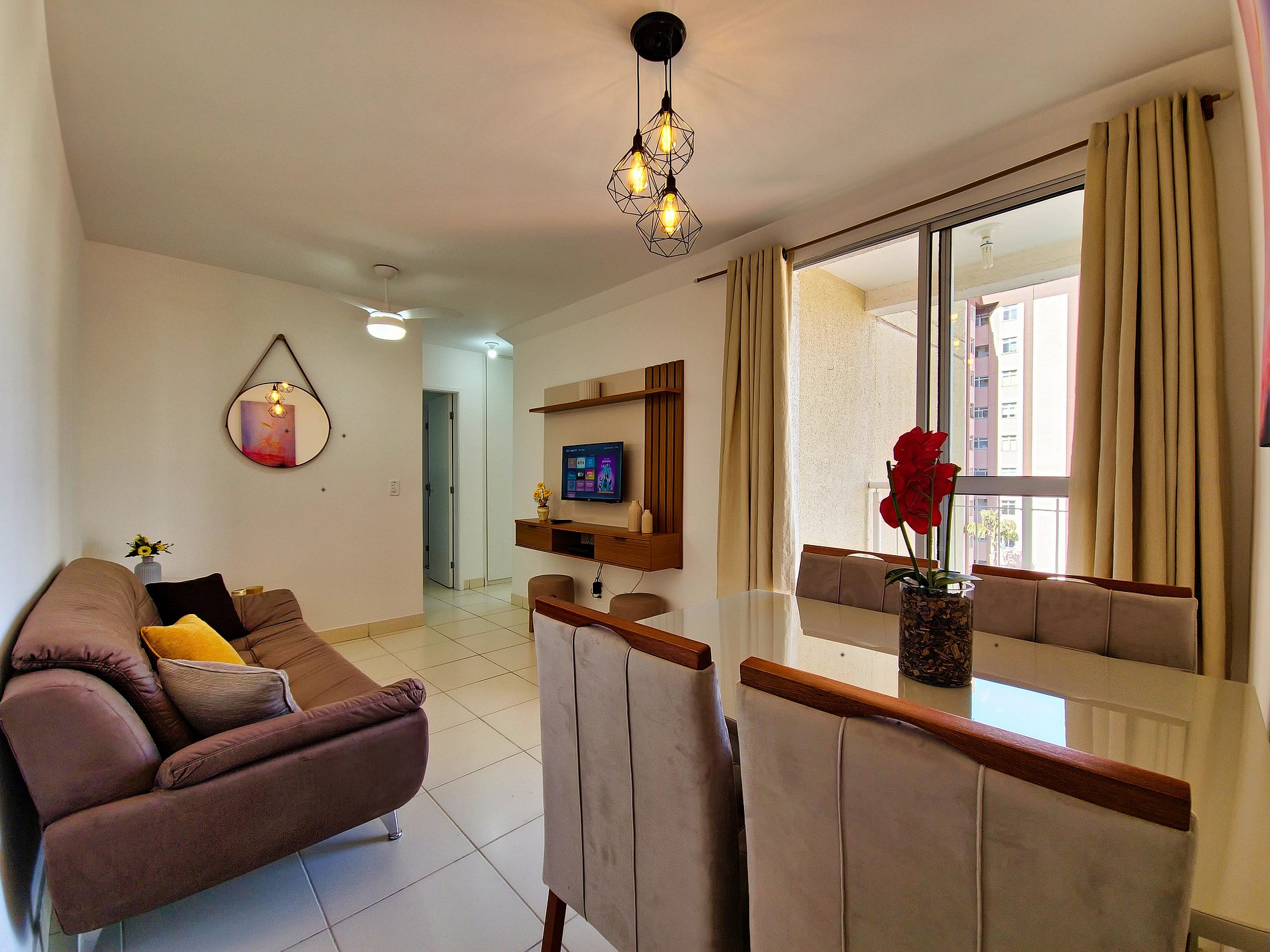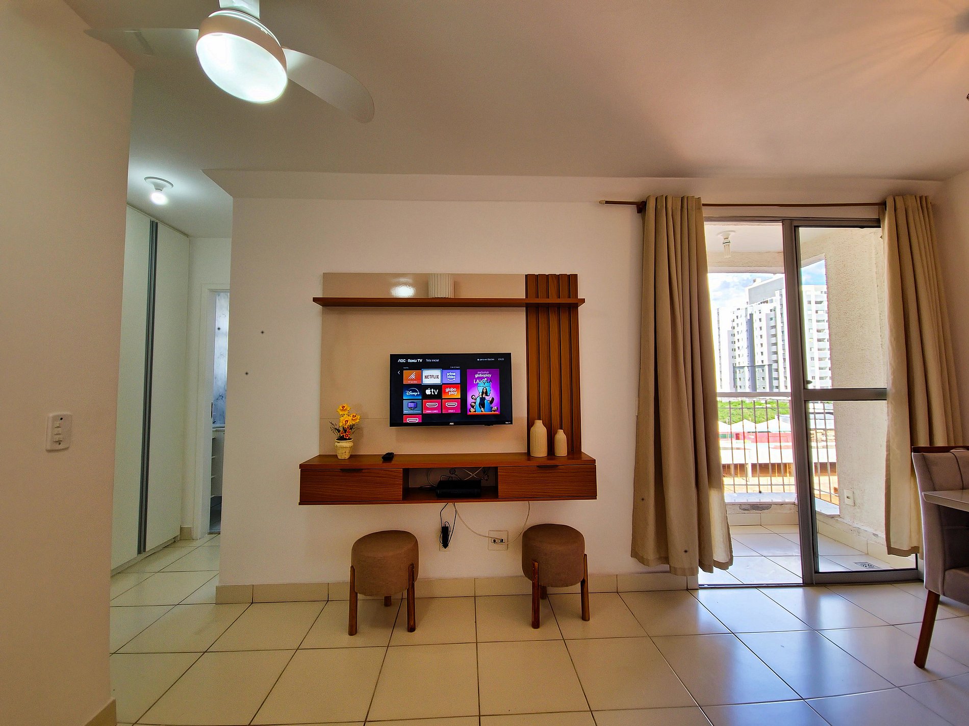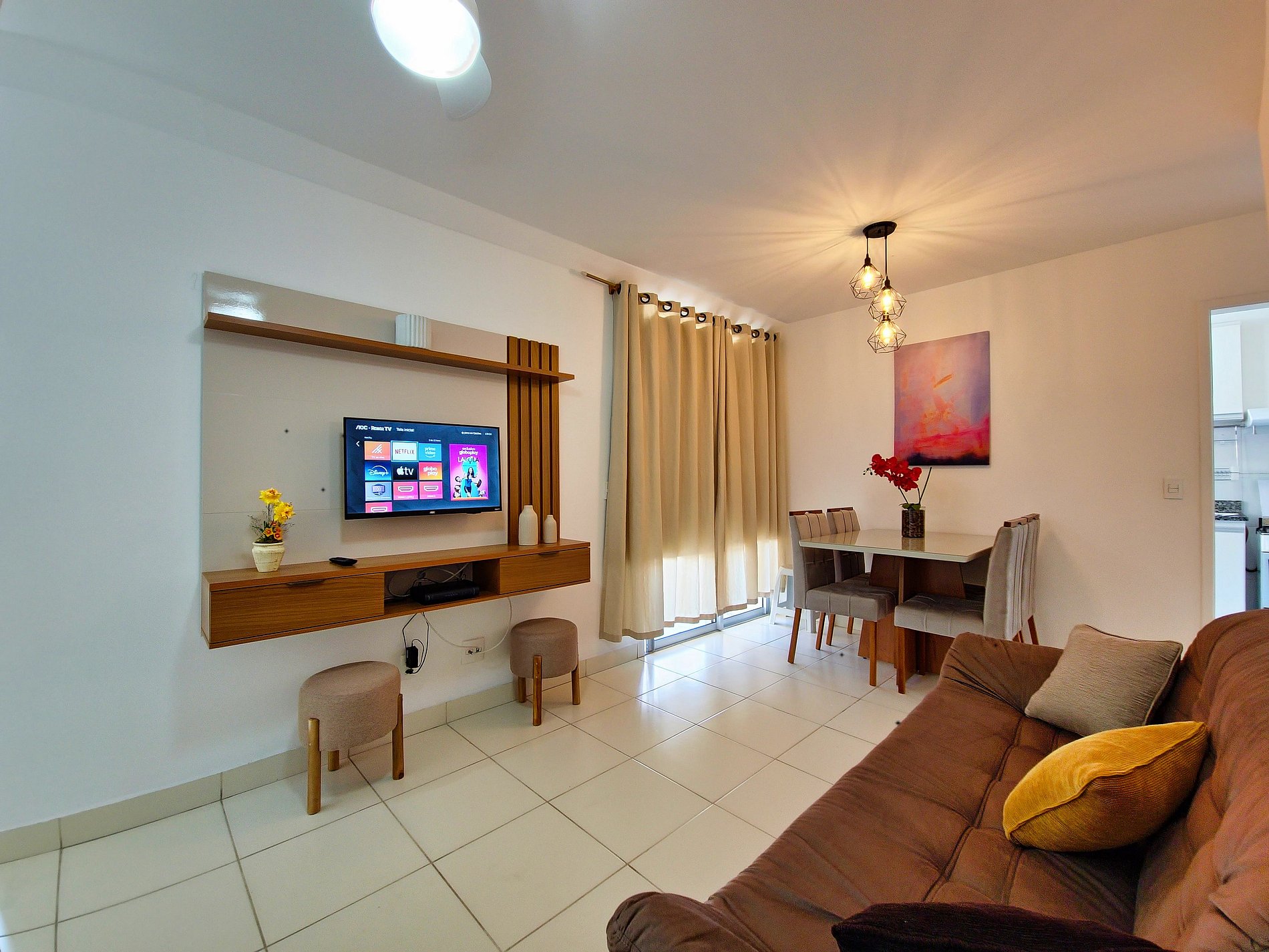 Este apartamento confortável conta com sala arejada conta com sofá, Smart TV, mesa de jantar e uma charmosa varanda para relaxar. A cozinha está equipada com tudo que você precisa para preparar refeições. São 2 quartos: uma suíte com cama de casal, closet e banheiro privativo, e outro com uma cama de solteiro que se transforma em duas. O apartamento ainda possui um banheiro social. Localizado em um condomínio seguro, oferece toda comodidade e praticidade para sua viagem!