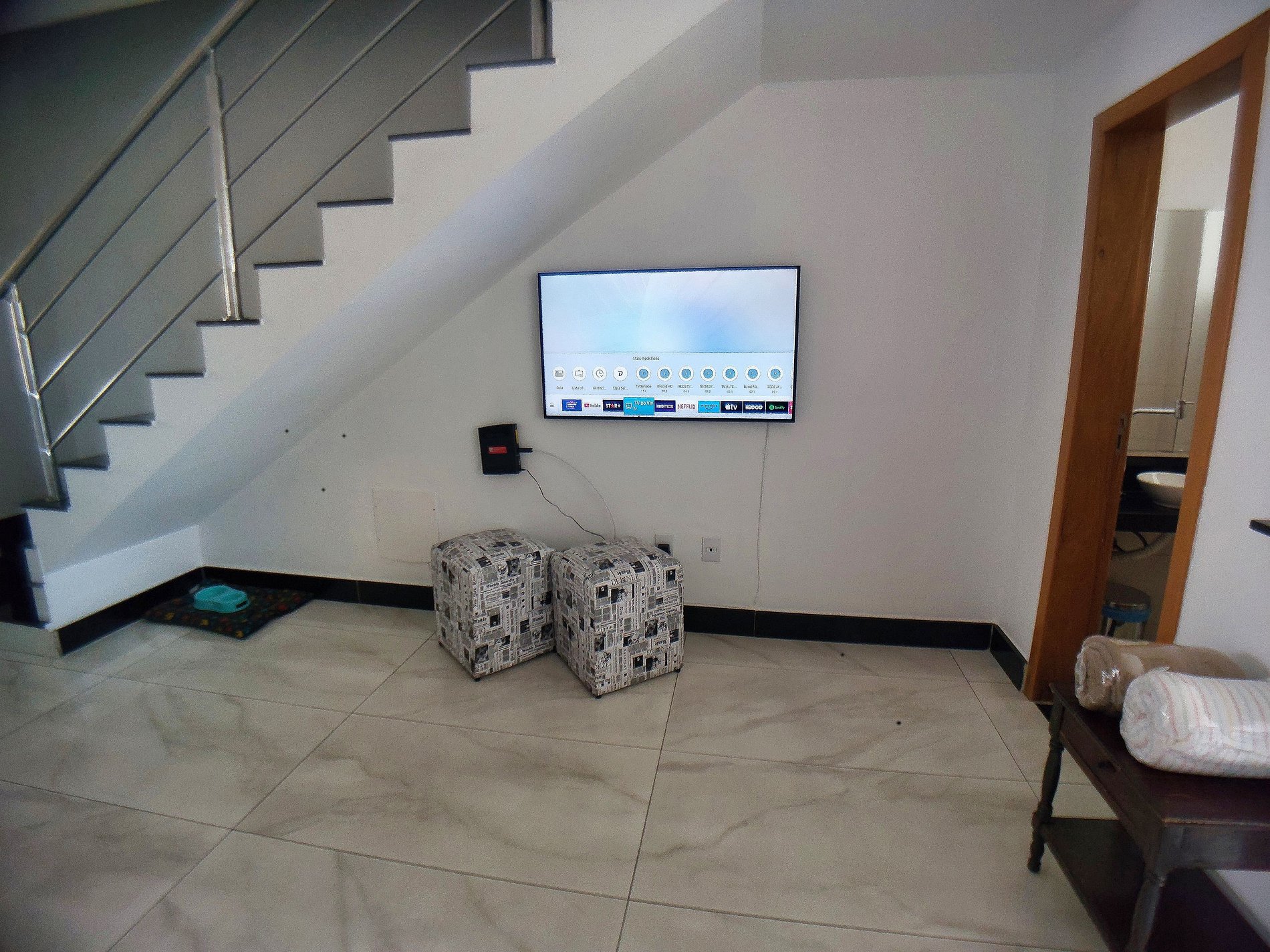 Desfrute de tranquilidade, privacidade e total autonomia nesta casa geminada, perfeita para férias em família ou viagens de trabalho. Com entrada independente, a casa oferece 3 quartos arejados e bem iluminados, além de um banheiro moderno no segundo pavimento. No térreo, relaxe na aconchegante sala de estar equipada com uma Smart TV de 50 polegadas e desfrute da cozinha americana completa, ideal para preparar suas refeições. Há também uma área de serviço, lavabo e um quarto adicional que oferece mais privacidade. A casa conta com internet de alta velocidade de 300 megas e um espaço gramado nos fundos.