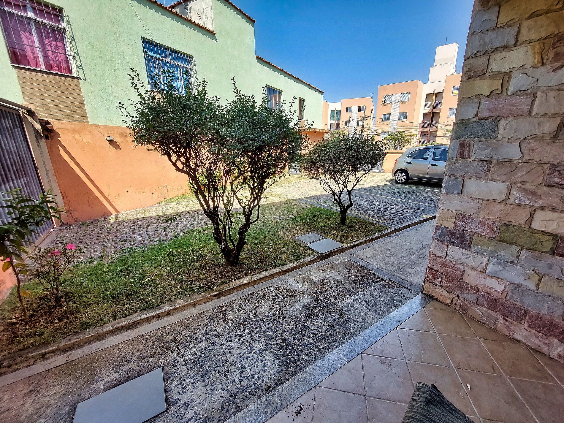 Este condomínio é formado por sete casas geminadas duplex, cada uma com dois pavimentos e paredes compartilhadas, criando um ambiente agradável e acolhedor, perfeito para famílias e aqueles que buscam tranquilidade e segurança. O pátio é adornado com piso intertravado, que além de ser uma escolha sustentável, realça a beleza do espaço, complementado por áreas gramadas. Para a segurança dos moradores, o acesso ao condomínio é controlado por um portão social com interfone e um portão de garagem elétrico, garantindo privacidade e conforto.