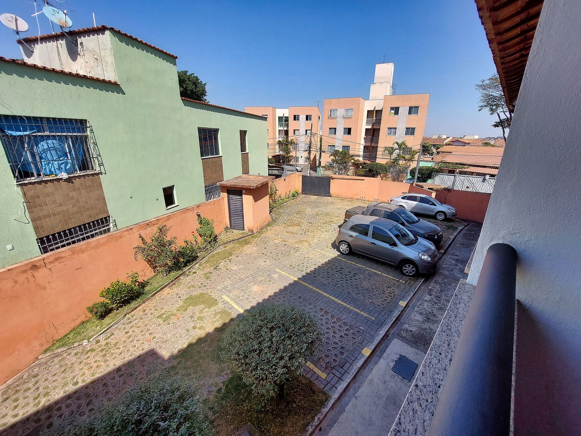 Este condomínio é formado por sete casas geminadas duplex, cada uma com dois pavimentos e paredes compartilhadas, criando um ambiente agradável e acolhedor, perfeito para famílias e aqueles que buscam tranquilidade e segurança. O pátio é adornado com piso intertravado, que além de ser uma escolha sustentável, realça a beleza do espaço, complementado por áreas gramadas. Para a segurança dos moradores, o acesso ao condomínio é controlado por um portão social com interfone e um portão de garagem elétrico, garantindo privacidade e conforto.