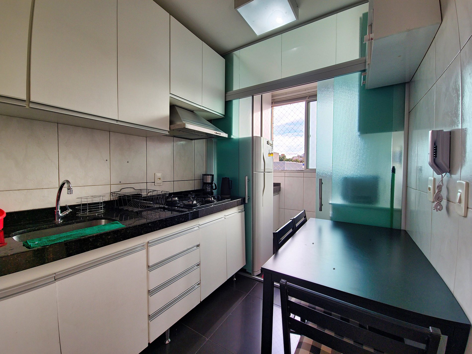Apto inteiro no 3º andar com elevador, suíte com ar condicionado, cama de casal queen size e tv de 32", segundo quarto com ar condicionado, cama de casal e colchão extra. Sala com sofá, smart TV 43”, ventilador de teto e varanda. Cozinha americana completa com utensílios, cooktop, micro-ondas e geladeira. Ambiente claro, arejado e seguro, com 1 vaga de garagem. Localização próxima à UFMG (9min), Mineirão (11min), Lagoa da Pampulha (8min), Arena MRV (15min) e Shopping Contagem (14min).