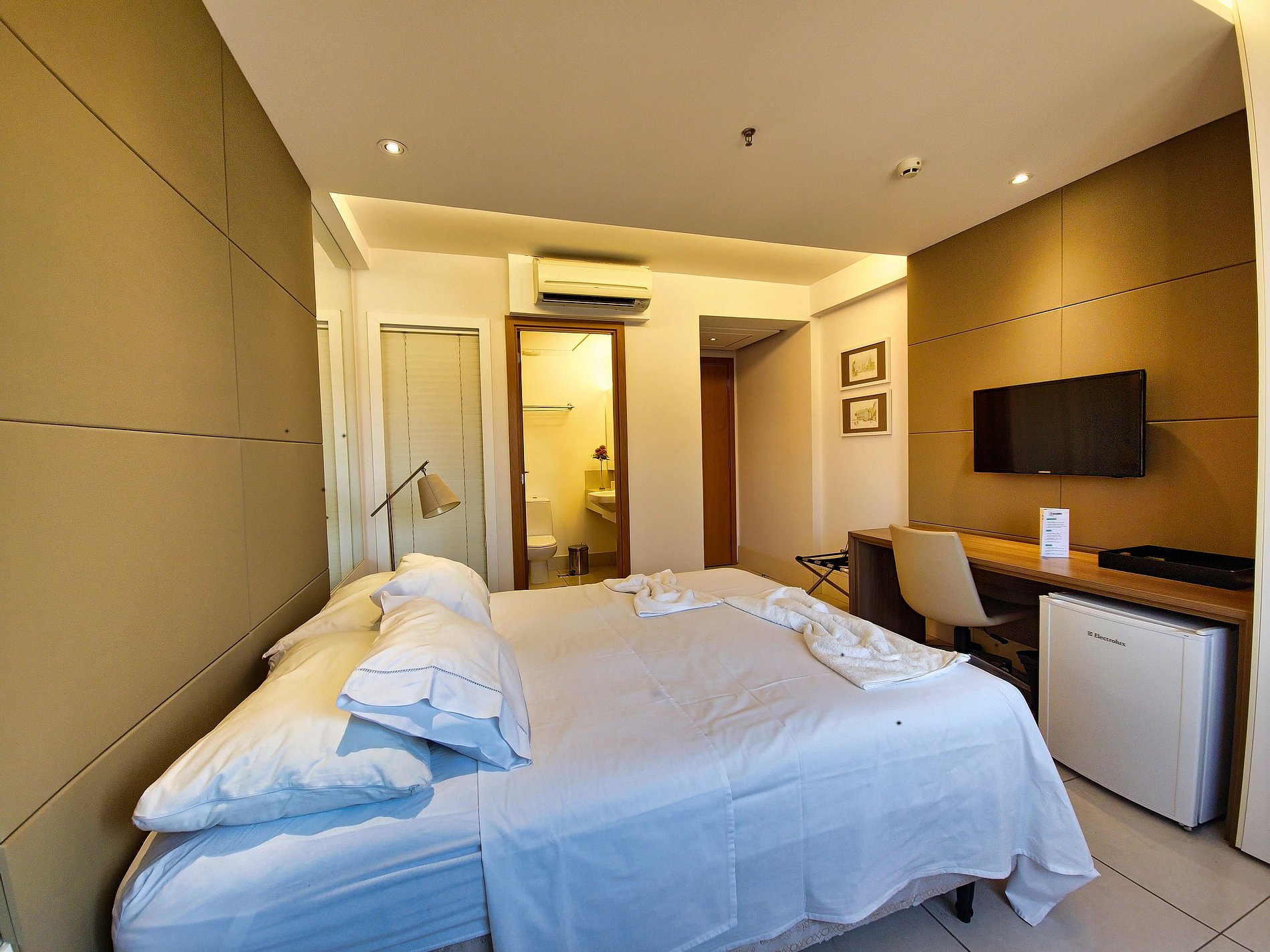 Suíte de hotel moderna e confortável em localização privilegiada de Belo Horizonte, próxima à Savassi e Lourdes. Oferece internet, cama queen com enxoval limpo e macio, ar-condicionado, Smart TV, frigobar e espaço de trabalho. Aproveite a estrutura completa com piscina, sauna, academia e recepção 24h. Próxima a bares, restaurantes e pontos turísticos como a Praça da Liberdade e o Palácio das Artes.