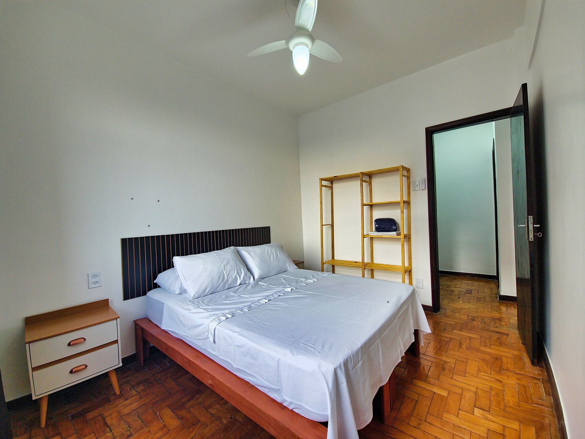 Localizado no coração de Belo Horizonte, este apartamento no 11º andar oferece conforto, praticidade e uma vista privilegiada. Bem iluminado e arejado, conta com um quarto aconchegante com cama de casal e ventilador de teto, sala equipada com sofá-cama confortável, Smart TV de 43” e mesa para refeições, além de cozinha completa com geladeira, micro-ondas, fogão com forno e todos os utensílios necessários para preparar suas refeições. A área de serviço dispõe de tanque e máquina de lavar, e a internet Wi-Fi é rápida para atender tanto lazer quanto trabalho. O prédio possui elevadores e portaria 24 horas, garantindo segurança e comodidade. A localização é excelente: a poucos passos do Mercado Novo (500 m), Mercado Central (600 m), Rodoviária (400 m), Shopping Cidade (750 m) e Praça Sete de Setembro (550 m), além de fácil acesso ao Minascentro, Sesc Palladium, Feira de Artesanato da Afonso Pena e ao bairro Savassi. Nos arredores, há padarias, farmácias, mercados e todo tipo de comércio.