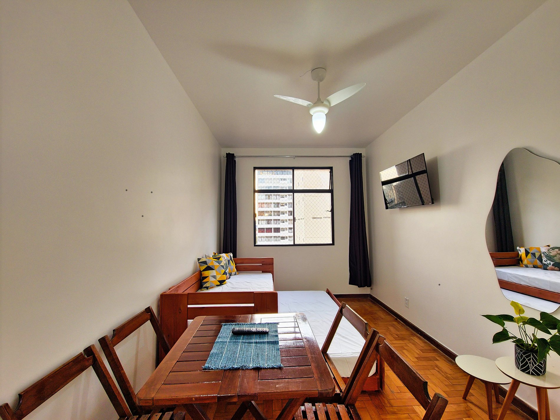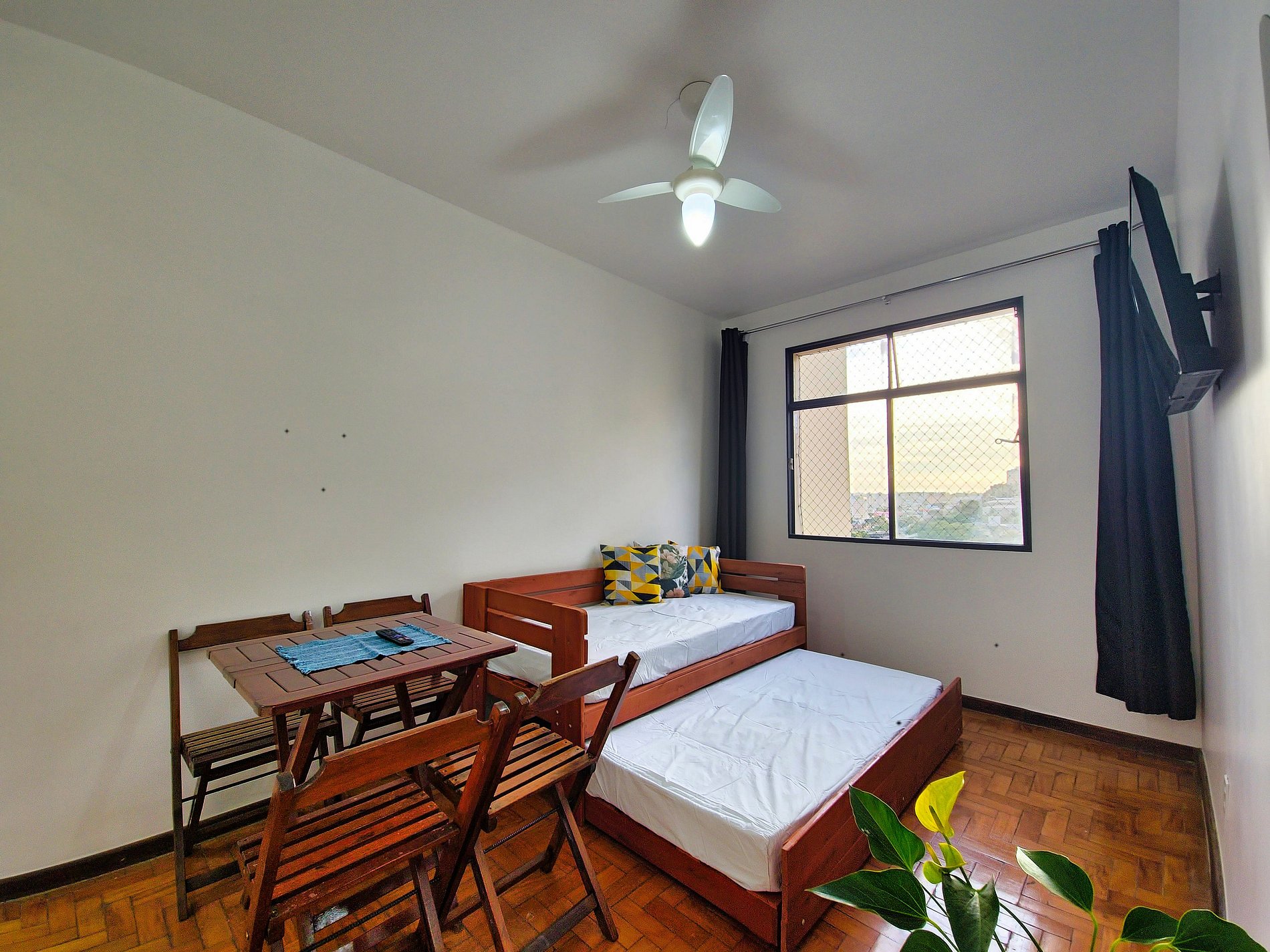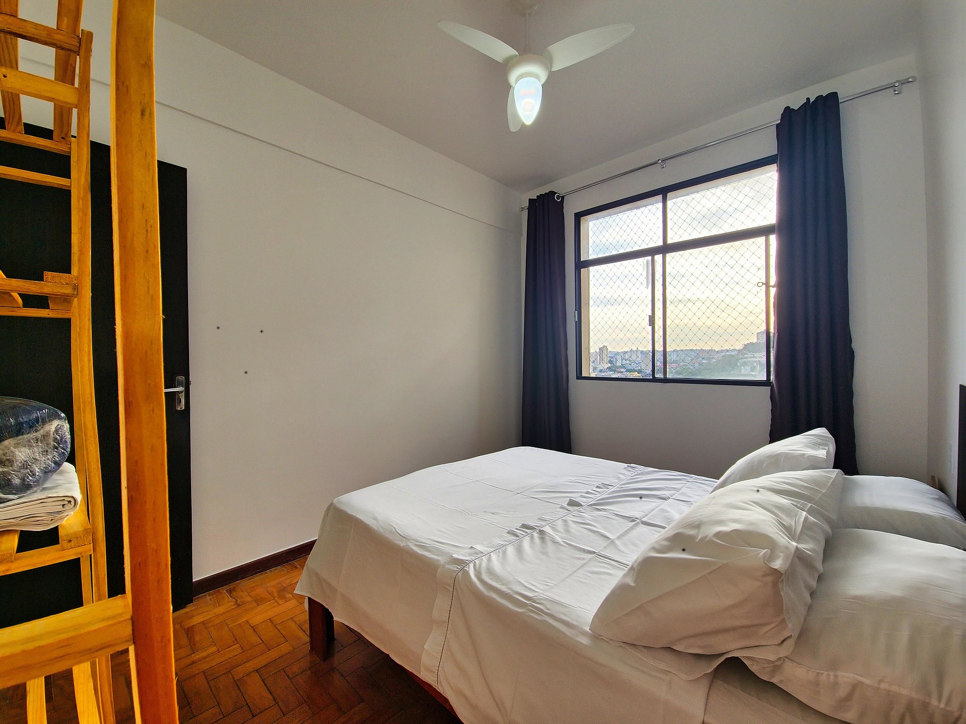 Apartamento confortável e bem localizado no coração de Belo Horizonte, no 11º andar, com vista privilegiada, excelente iluminação e ventilação. Ideal para lazer, trabalho ou estadias de curta e média duração. Conta com 1 quarto com cama de casal, sala com sofá-cama e Smart TV de 43”, cozinha completa, internet rápida e portaria 24h. Fica a poucos passos do Mercado Central, Mercado Novo e principais pontos turísticos da cidade.